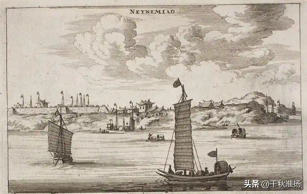 尼霍夫还记录并绘制了SIAMPU(清江浦)、NEYNEMIAO(奶奶庙,即惠济祠)的景象。