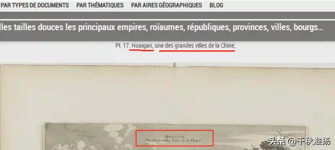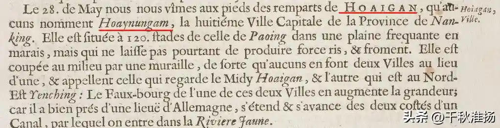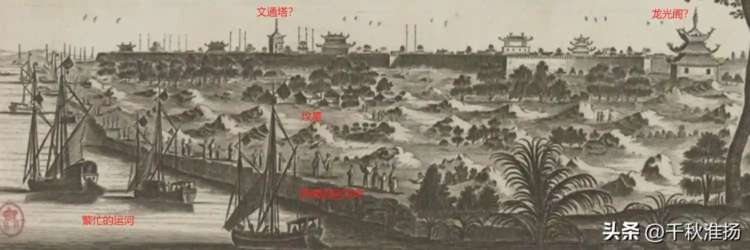 在法国国家图书馆官网,收藏了荷兰东印度公司使者访华的铜版画,其中就有淮安。淮安的版画上,有法语标注: