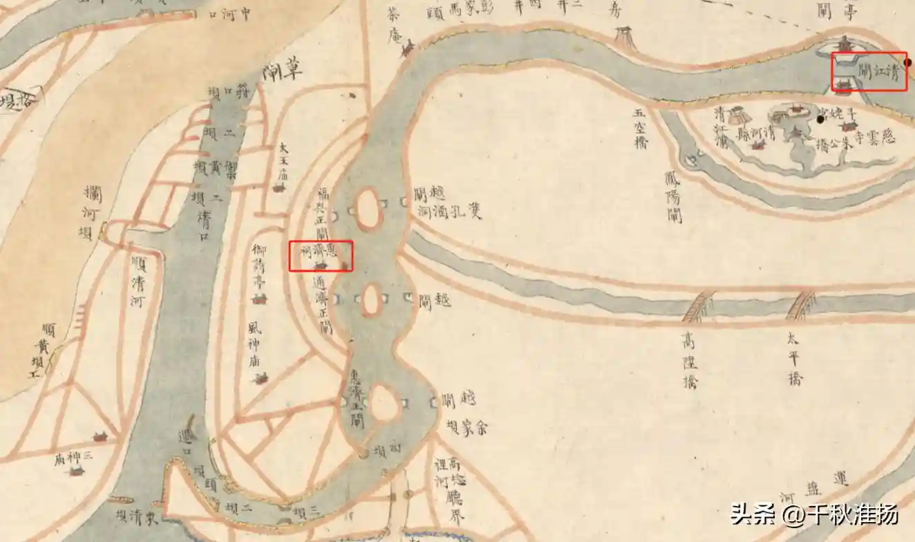 道光初年《四省运河水利泉源河道全图》中的清口枢纽、惠济祠、清江浦