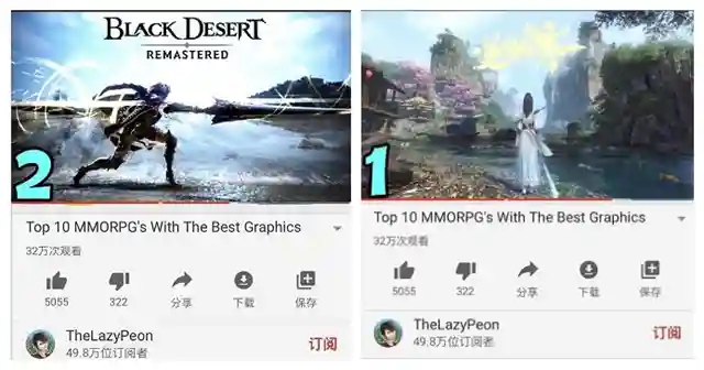 而油管上有一位坐拥50万粉丝著名游戏评测up主"TheLazyPeon"对逆水寒更偏心,他是一位知名up主,评价了诸多全球热门游戏很受老外认可。但是在他评选出"全球画面最牛的十大网游"中,逆水寒赫然排在了第一,连黑色沙漠都只能屈居第二。TheLazyPeon的理由是:"黑沙画面非常出色,但远景是硬伤;而逆水寒画面逼真且远景效果不会下降太多,更有视觉上的无缝感。"