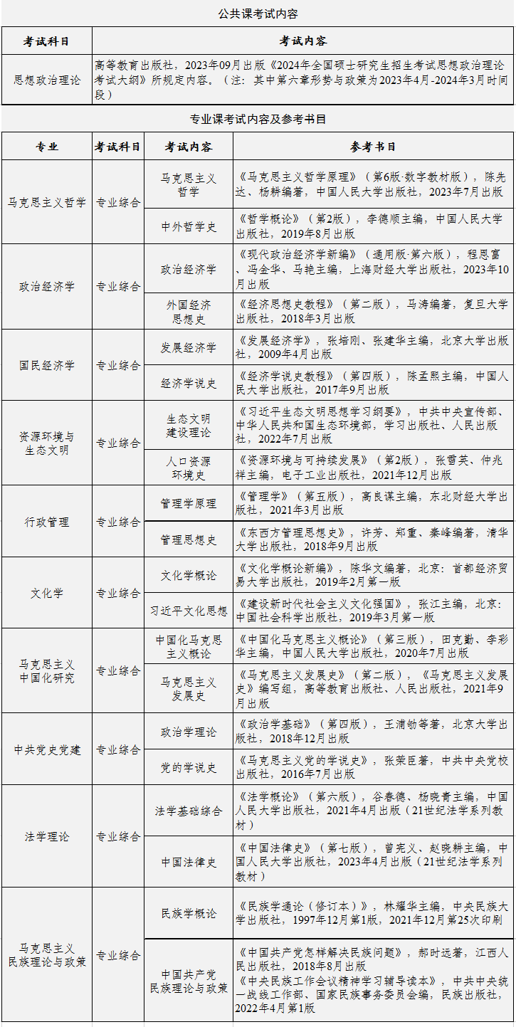 共2门。分别为:公共科目(思想政治理论)和专业综合科目(包含专业基础理论及专业学说思想史)。备考要求及参考书目参见附件2《2024年在职研究生招生入学考试指南》。