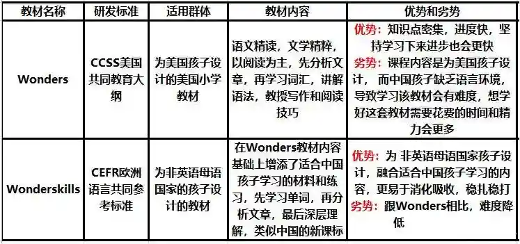 3)在教材和课程选择方面,如果孩子已经有一定英语基础,且以后有出国学习的规划的,可以考虑Wonders或Reach教材以及相应课程;如果孩子英语基础还一般,想让孩子更好地应对国内各种英语考试,同时增加些写作方面的练习,可以考虑WonderSkills教材及相应课程。
