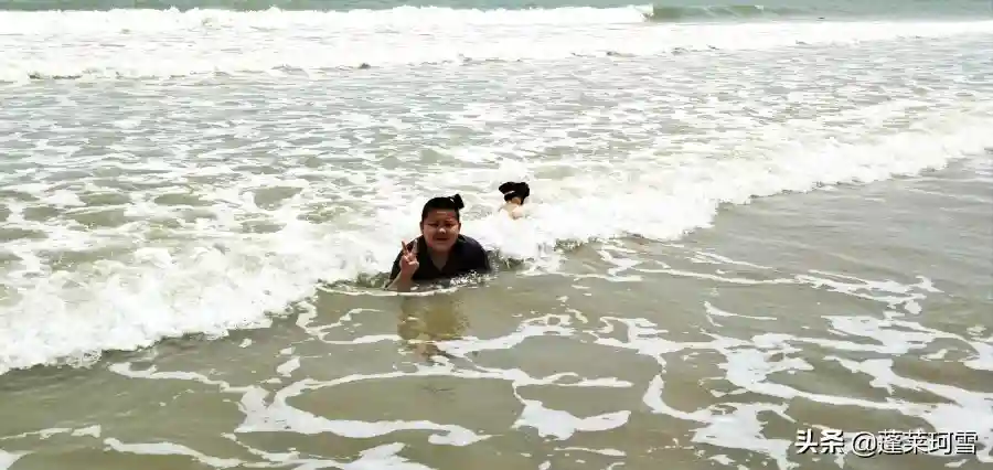三亚湾的海水虽然没有亚龙湾的清澈,但也是蔚蓝清透,海天一色。由于这里的沙滩非常平缓,所以站在海里,即便走出去很远,海水也还是很浅,非常适合孩子们在这里戏水。不过,我感觉三亚湾的浪好像要比亚龙湾大一点,所以孩子们在水里游玩还是要注意安全。