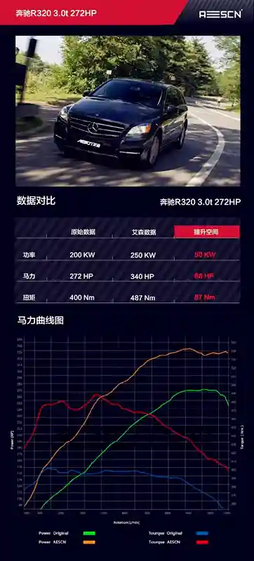 奔驰R320艾森数据:250kw/340HP/487NM;