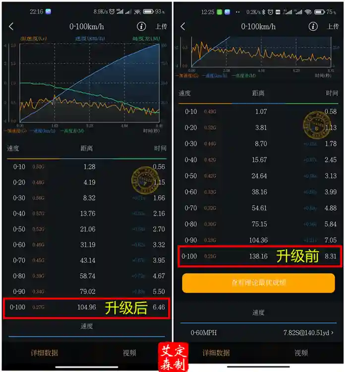 节气门响应灵敏度优化到位,油门变积极,感觉整体动力输出更加线性,提速顺畅有力,原厂降档的顿挫感得到优化,深踩油门推背感显著增强,MPV跑出轿跑的提速感。经过实测0-100kn/h缩短近2S!