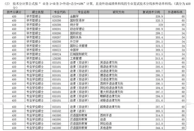 上外各专业(研究方向)一志愿考生复试分数线