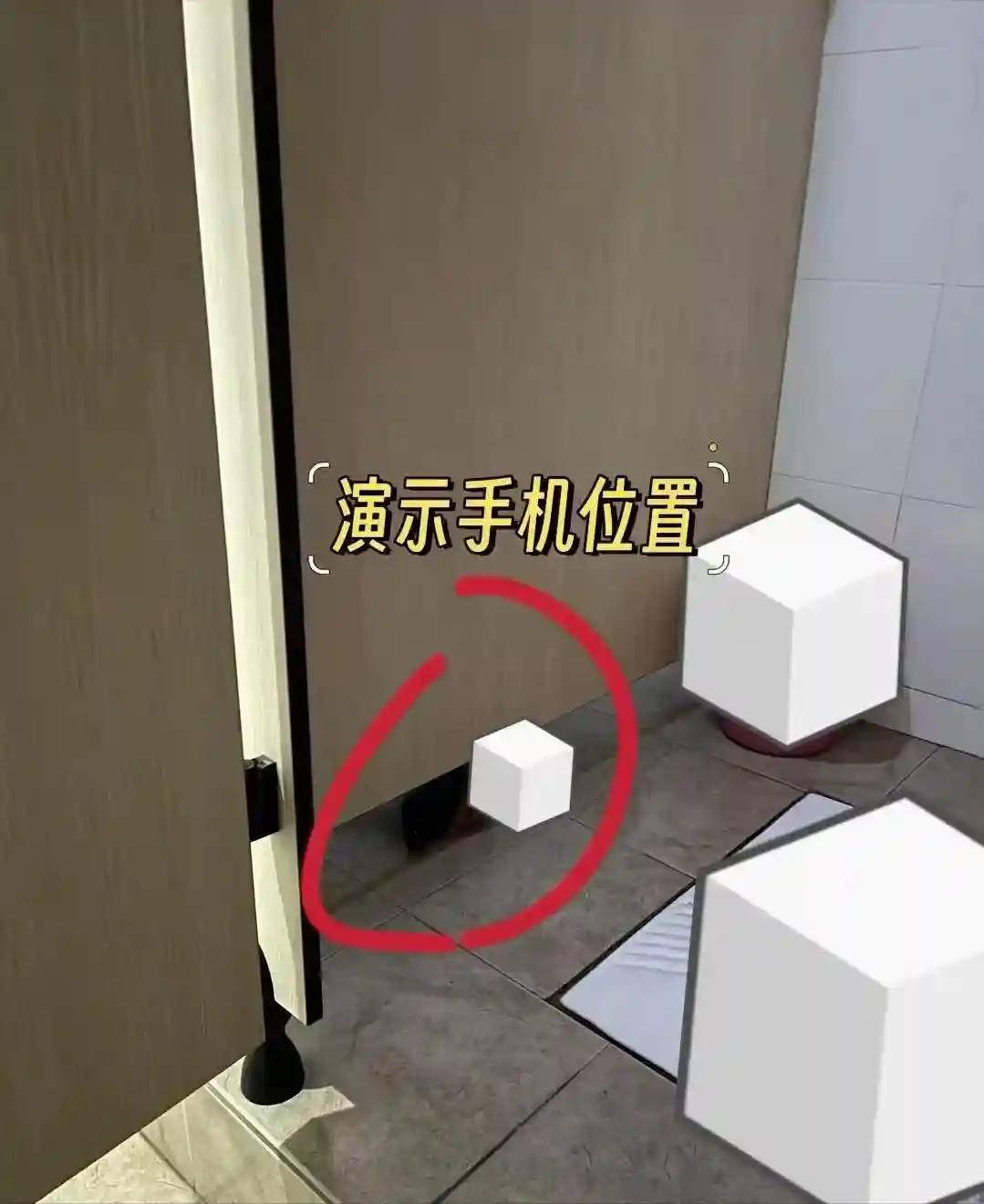 疑点二:男生手机位置的可疑性。他解释说自己当时是一只手拿手机,才让人误以为他在拍摄。然而,事后有女生进行现场模拟,发现隔间下方的缝隙很低,如果要让隔壁的人看到手机,必须要非常刻意地将手机伸到隔间下方,这种情景显然不符合男生的解释。