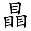“瞐”的异体字也有将“目”字横过来写的字形。含义:同“瞐”。