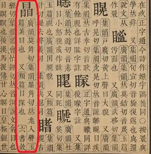 “瞐”的本义是美丽的眼睛。在古代,人们常用“瞐”来形容女子的眼睛明亮而美丽。《说文解字》中解释为“瞐,美目也”。