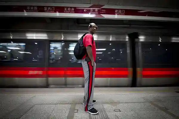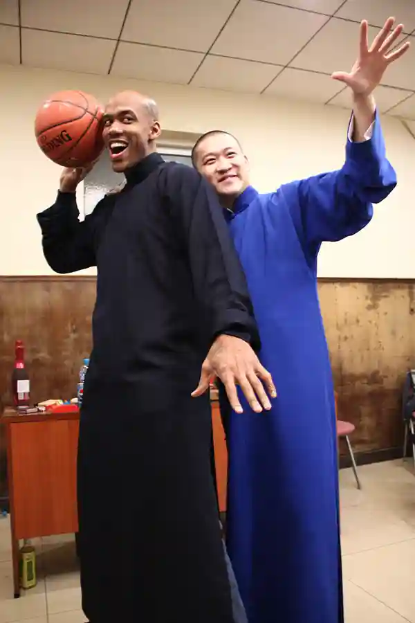 他成了北京地铁的常客,你时常会看见马布里戴着红色耳机,坐在1号线的地铁里,穿梭在王府井和首钢训练馆之间;他穿着长大褂和曹云金说相声;他去工体看球,给国安加油;他还会参加北京电视台的春节晚会,体验中国的春节……