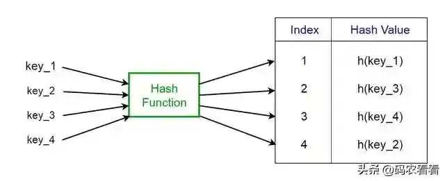 在直接访问中,带有密钥k的值存储在插槽k中。使用哈希函数,我们可以计算出每个值都指向的表(插槽)的索引。使用给定键的哈希函数计算的值称为哈希值,它表示该值映射到的表的索引。