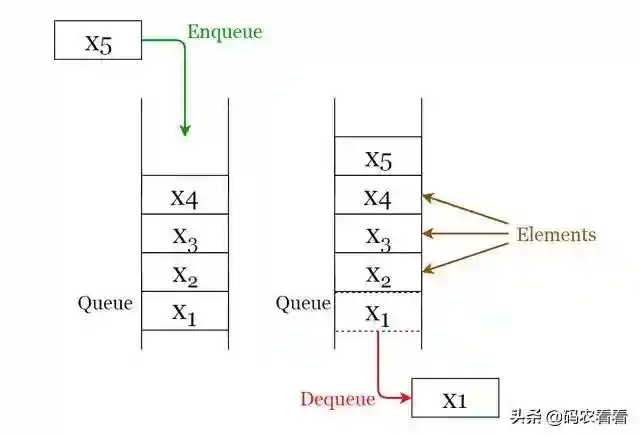 队列操作下面给出了可以在队列上执行的2个基本操作。请参考图4,以更好地了解堆栈操作。