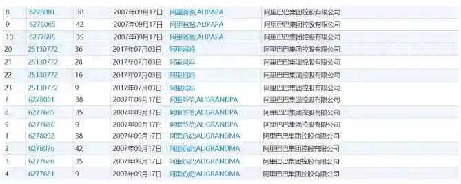 还有马云的阿里巴巴,注册有阿里妈妈、阿里叔叔、阿里爷爷、阿里奶奶等……