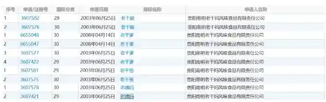 据上游新闻,老干妈更有意思,注册了老干爹、老干娘、老干爸、干儿子、干女儿、老姨妈……可谓是七大姑八大姨都被注册了个遍。