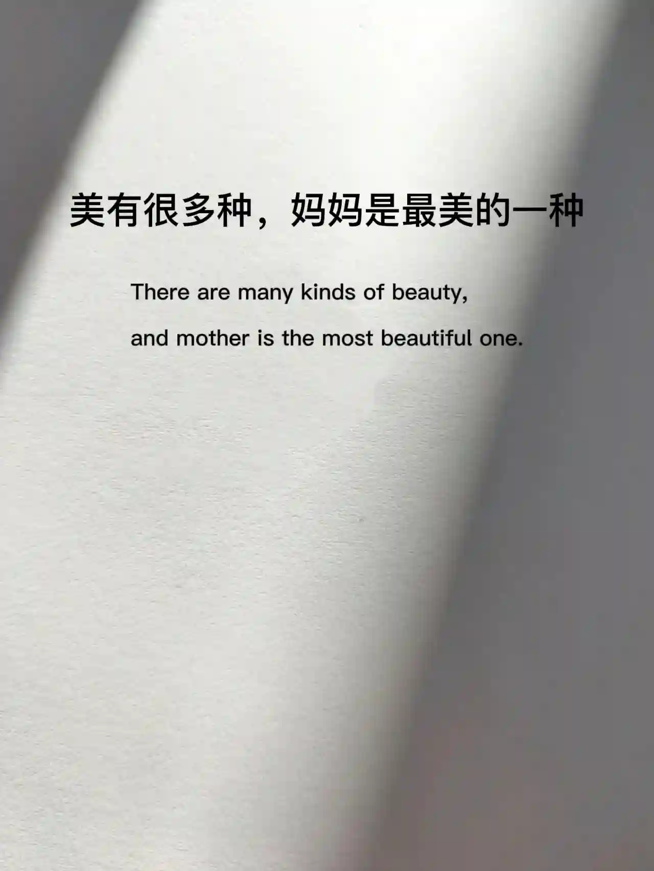 美有很多种,妈妈是最美的一种。Therearemanykindsofbeauty,andmotheristhemostbeautifulone.