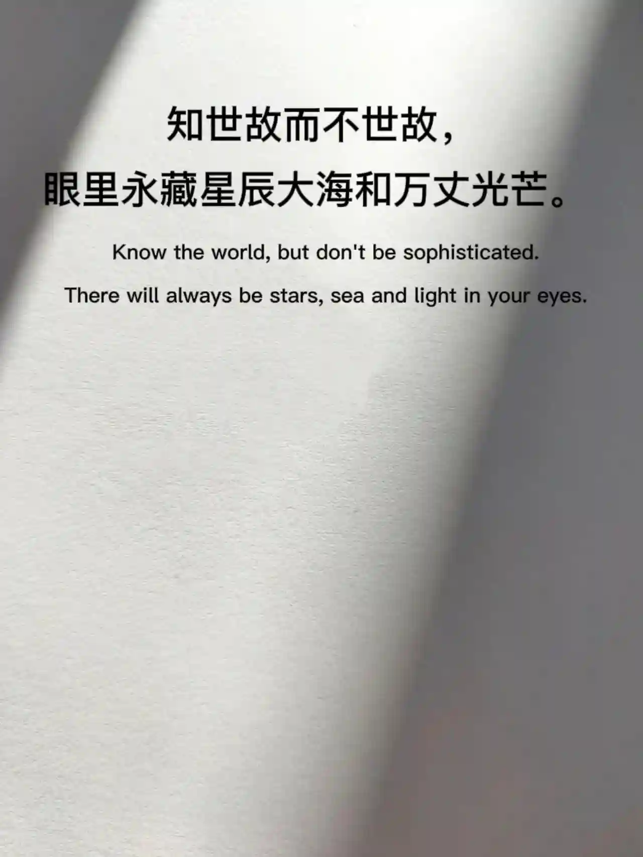 知世故而不世故,眼里永藏星辰大海和万丈光芒。Knowtheworld,butdon',seaandlightinyoureyes.