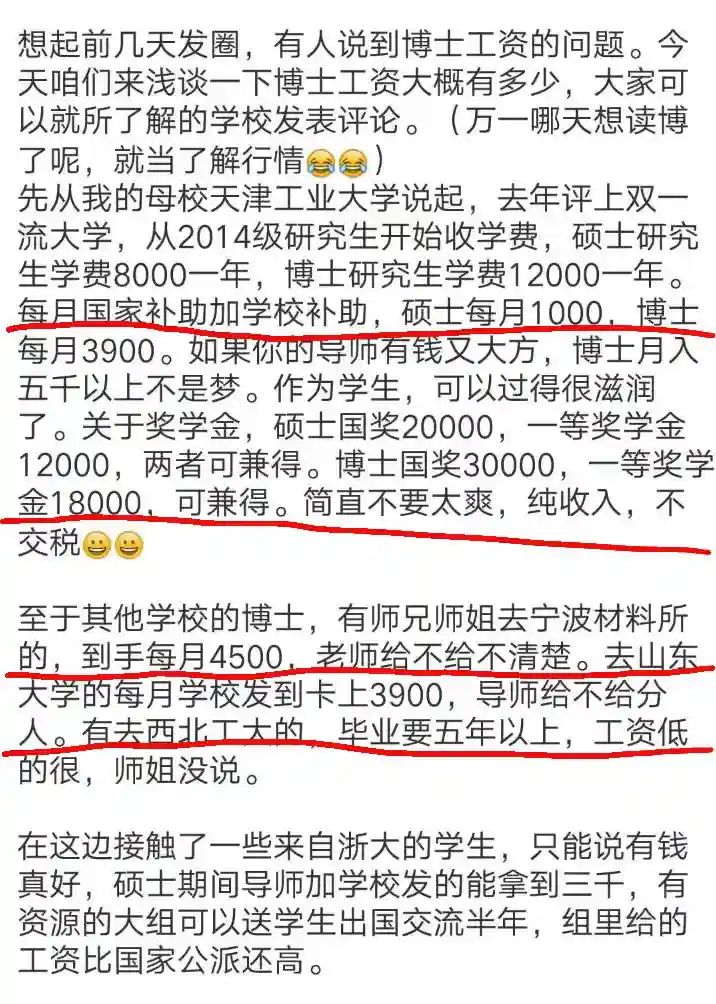 很多人看到这里估计会很惊讶,研究生的学费居然这么贵?其实也没有什么值得大惊小怪的,因为研究生的培养成本也要远远高于本科生。不过,虽然天津工业大学研究生学费很贵,但是补助也是很诱人的!硕士每个月补助1000元,博士每个月补助3900!如果说导师比较有实力,对学生又比较慷慨,那么博士每个月补助超过5000也不是梦!有了这些钱,研究生每个月的生活费最起码不用再发愁了。