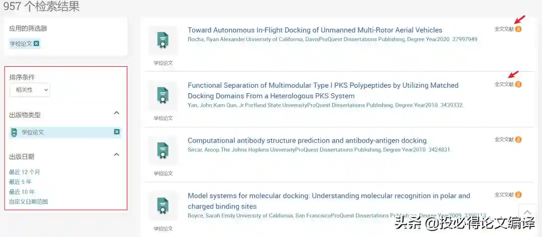 对于在校生,可以通过学校图书馆使用ProQuest博硕士学位论文全文数据库,如果不是在校生,也可使用免费下载的版本PQDTOpen,内容虽然不如付费的全面,但基本能够满足日常需求。