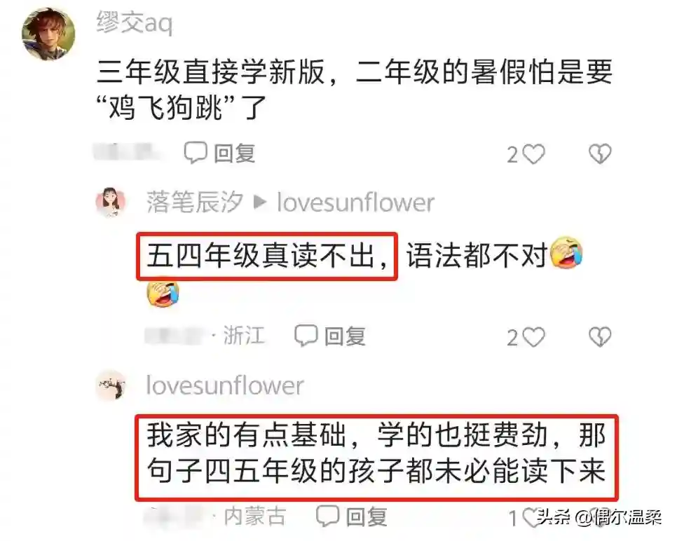 在这片改革的浪潮中,小学三年级的家长们率先感受到了前所未有的挑战。曾经,李雷与韩梅梅的故事,是孩子们英语梦启航的温馨港湾;而今,MikeBlack与SarahMiller的异国风情,却让初涉英语的孩子们和家长们一时难以适应。家长们在辅导作业时,面对全英文的对话,不禁感叹:“太难了,这简直是让三年级的孩子直接跳级到了高级班!”