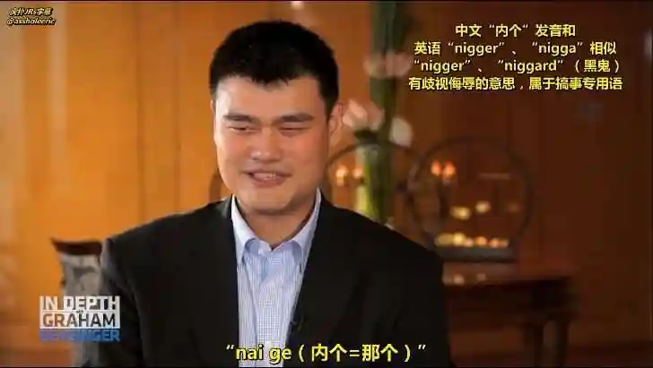 姚明说自己曾经在更衣室里说中文“内个,内个”,险些被队友认为他是在说“Nigger”,然后被当成种族歧视者。