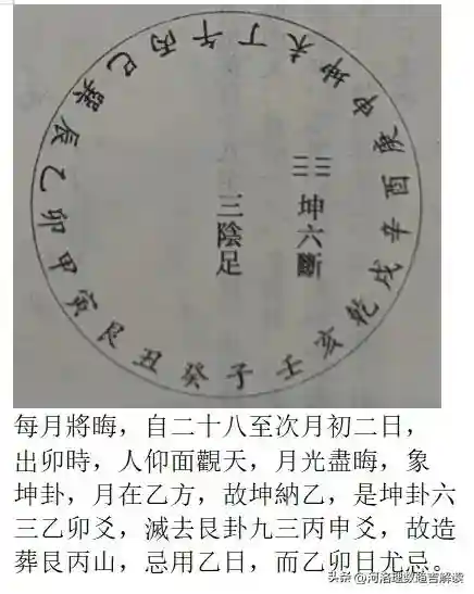 三十至初一之月晦全純黑,象坤卦☷,三陰全備,卯時月在乙方,故坤納乙屬土。
