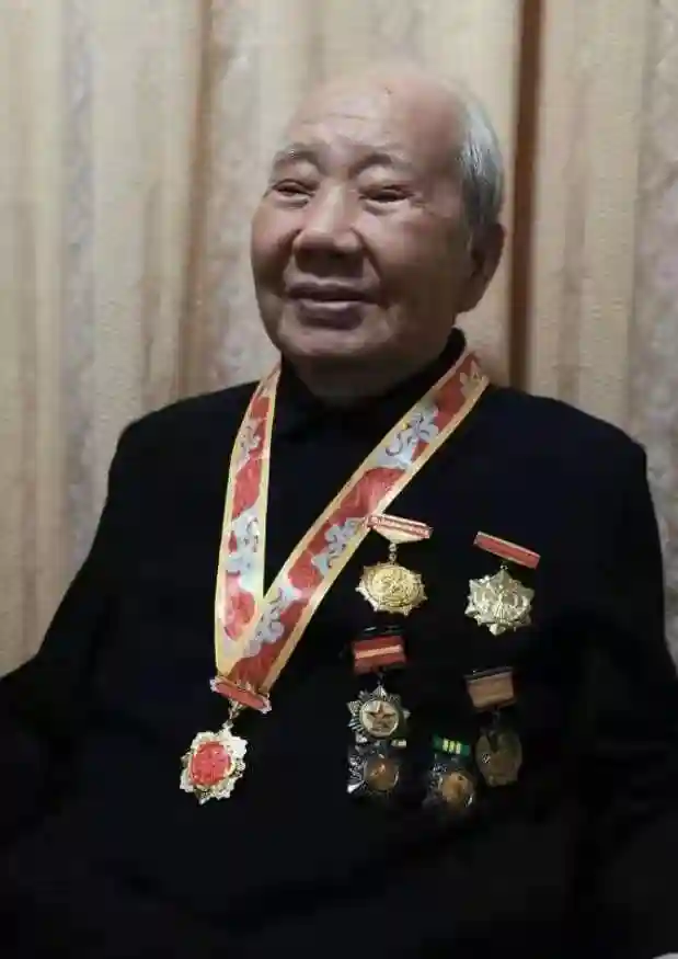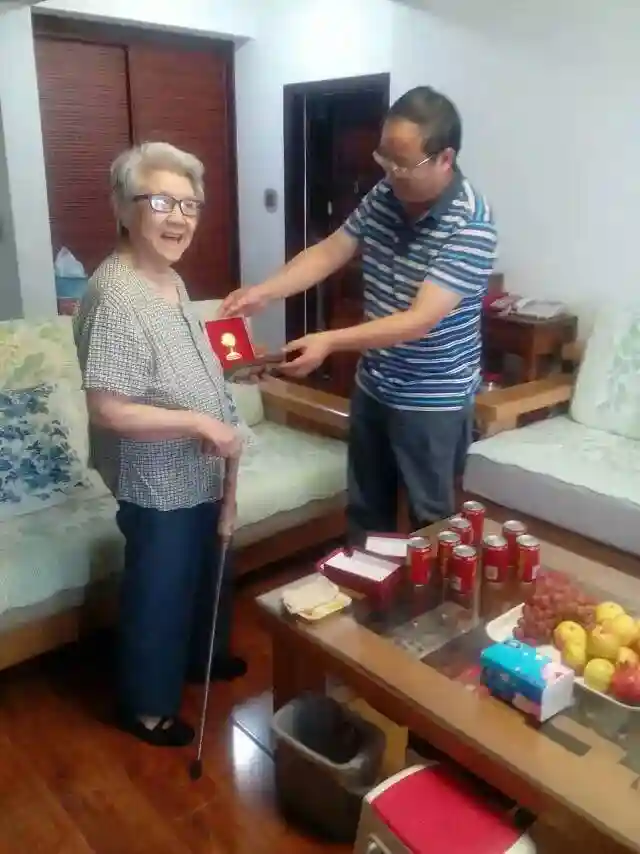 2015年9月,宗树坤在家中接授抗战胜利70周年纪念章时情景。