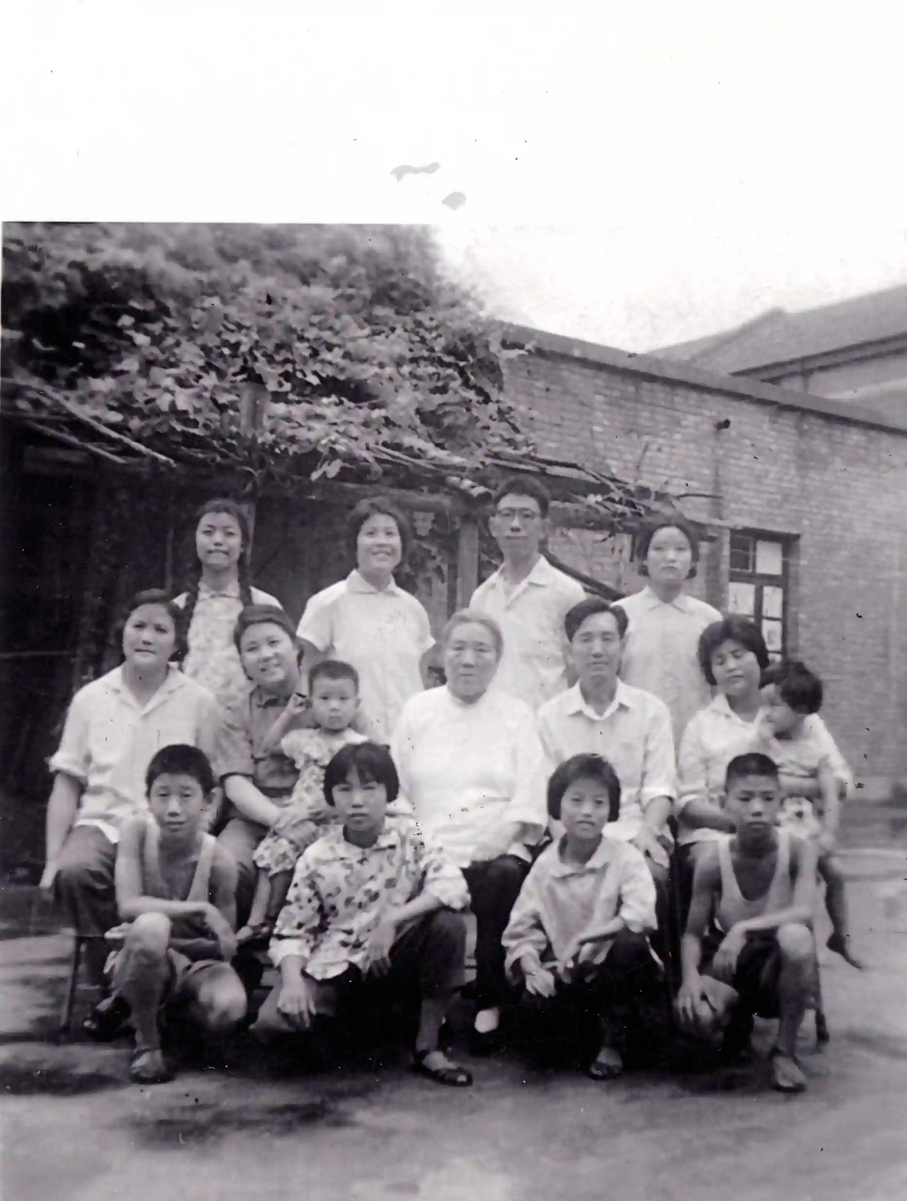1973年,部分家人在郑州合影;中排左起:宗树民、宗树坤、母亲刘立德、宗树琴、宗树范;后排中宗树青与丈夫