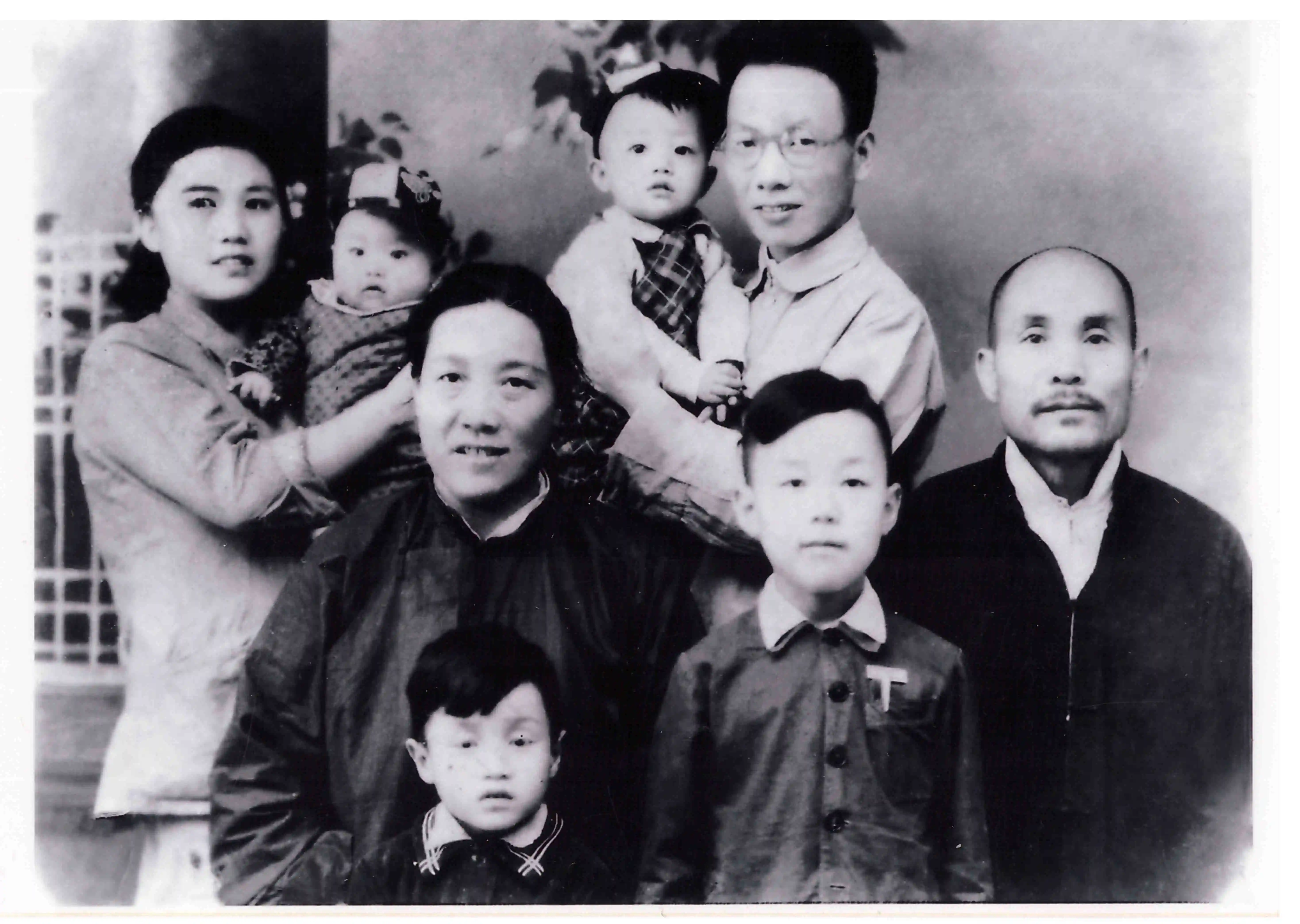 1953年家人在焦作合影:后排右起:杨廷坤、宗树坤;中排右起:父亲宗润岩、母亲刘立德;前排右起:宗树荫、
