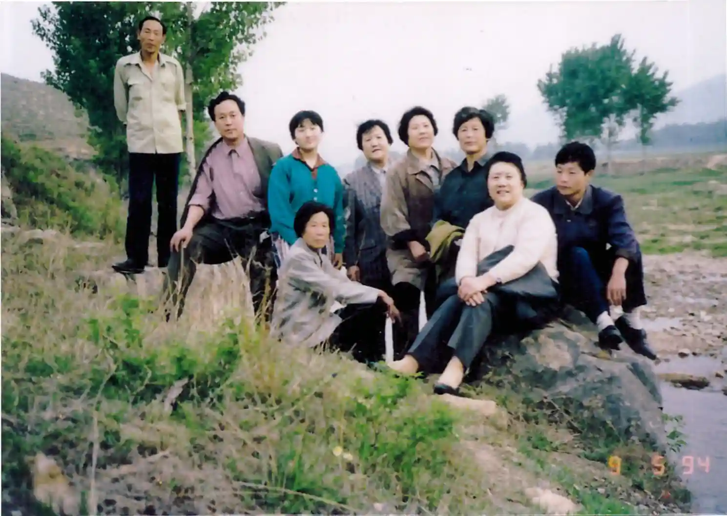 1994年峙山留影:前排右起:宗焕毅、宗树坤、刘筱兰;后立者右起:宗树正、宗树青、宗树民、宗炳兰、宗树荫