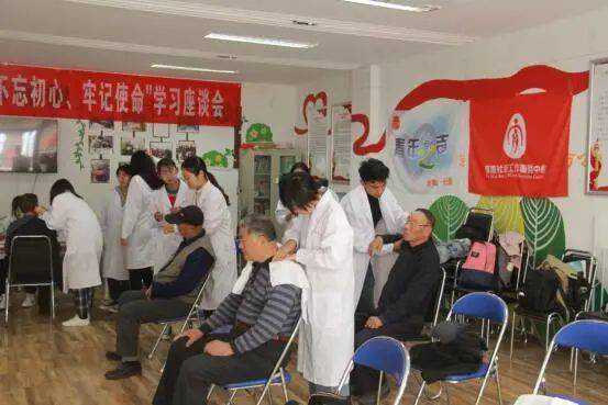 山东中医药大学针灸推拿学院“针心灸行”社区服务队由学院本科生、研究生组成,积极贯彻习近平总书记对于中医药事业的期望。5年的时间里,服务队为附近社区居民及敬老院老人进行社区义诊达80余次,累计服务人数约3000余人次,累计参加的实习医生约140余人次。