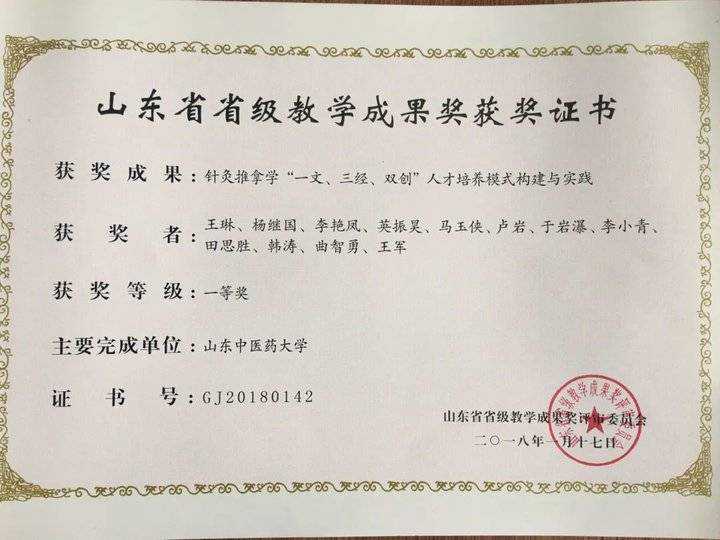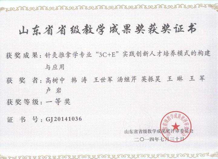 在长期的专业建设和实践中,构建了“3C+E”的针灸推拿专业实践创新人才培养模式,即针推经典理论学(ClassicsofAcumox)、针推临床实践(ClinicalskillofAcumox)、创新能力培养(Creativeability)、英语应用能力培养(Englishapplicationability)。2014年获山东省教学成果一等奖。