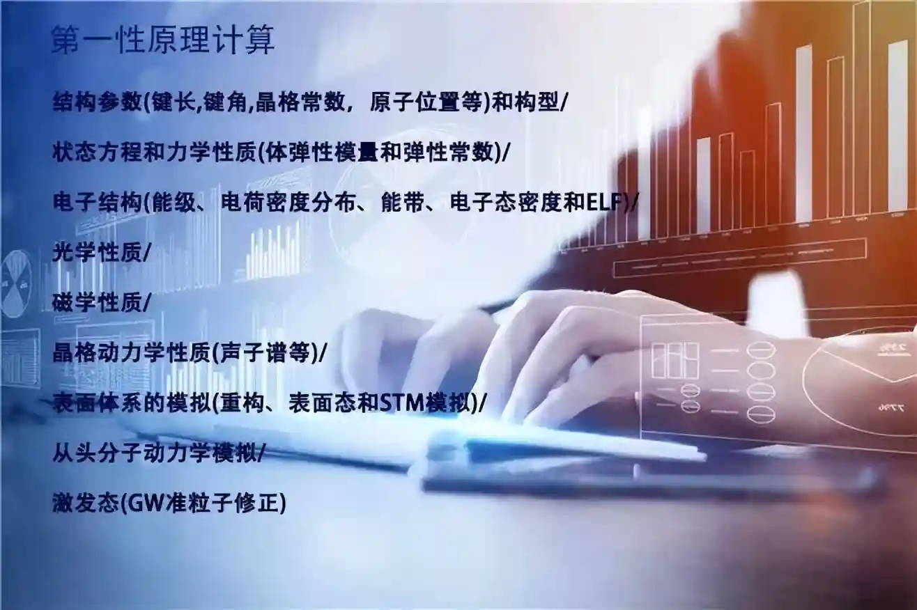 第一性原理计算是目前材料模拟和计算物质科学研究中最流行的方法之一。针对周期性或非周期性材料,开展第一性原理计算,获得材料的电子结构信息,对材料性质开展预测。