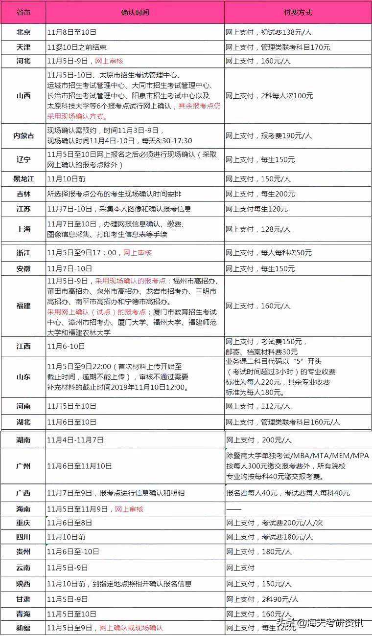 截止到目前,各大省市已经公布了现场确认时间、确认方式以及报名费,具体的时间节点可参考下图: