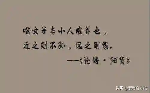 我认为,如果咱们抛去“唯女子与小人难养也”这句饱受争议的句子的出处,单从字眼上来理解,此句话确实会让人们感受到对女性的不尊重,以及联想到过去封建社会中的男尊女卑的历史。但其实,这是一句被截头去尾、被断章取义的话,它的整句是“唯小人与女子难养也,近之则不逊,远之则怨”,其出处于孔子的《论语.第十七章.阳货篇》,与此同章的还有大家熟知的“性相近也、习相远也”。时间久远的流传加上对这句话很多人听一遍就记住了,甚至被一些人拿来含沙射影的讽刺女性,这样一传十、十传百,对内容理解的分歧也让孔子的这句话被“误会”成了贬低女性
