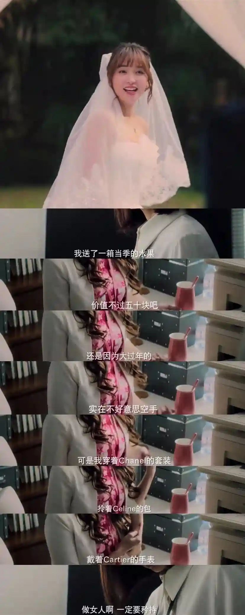 周末拿出半天时间,2倍速+快进开始刷。刷着刷着,放下剧情先不说,我发现女主的气质肉眼可见的一集比一集好,而且全程没有用男主的目不转睛,或女伴的目瞪口呆来烘托,纯靠团队的造型功力,不得不服!