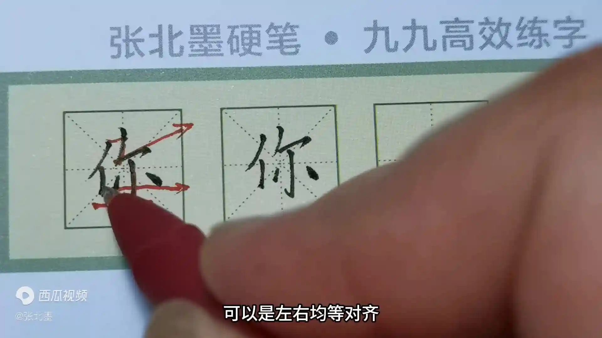 3.如果把控不好结构,可以把这个撇画写长一点去调一下,感受一下它的结构。然后再进行尺寸的调整,它们之间的疏密是均衡的。