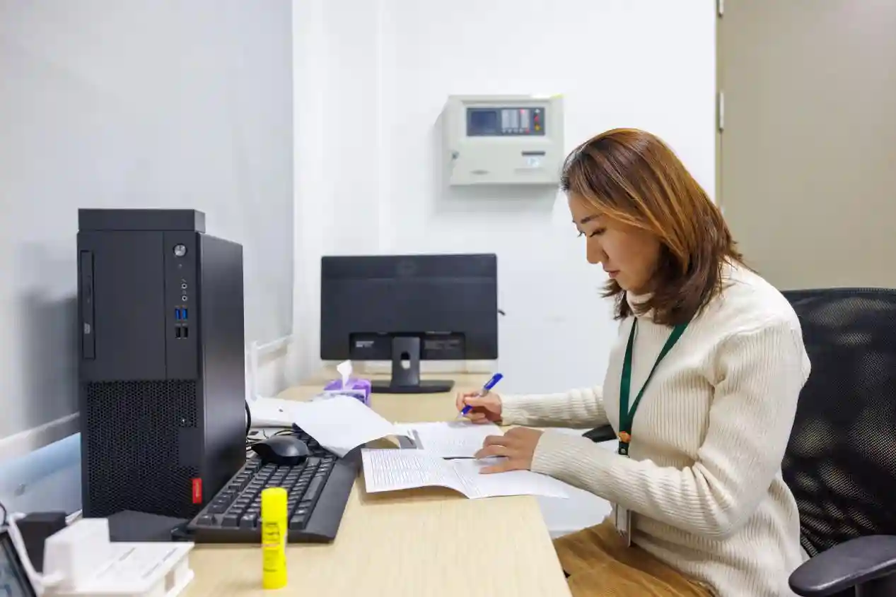 恭王府博物馆藏品研究部馆员闫月欣正在翻阅表单。新京报记者王子诚摄