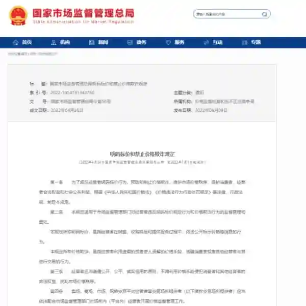 今年7月1日,国家市场监督管理总局发布的《明码标价和禁止价格欺诈规定》已实施。