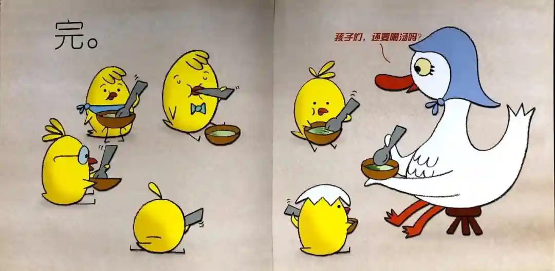 4.让书中的文字变得趣味化。找一找书里的小鹅,每次说话时数量都在增加,而且表情动作各异:有的垂着眼睛哭起来、有的瞪圆了眼睛大声说着、有的躲在角落身体都在颤抖、有的捂着眼睛不敢看我们一起来试试吧,模仿表情摇摇舞,指到哪个做哪个!