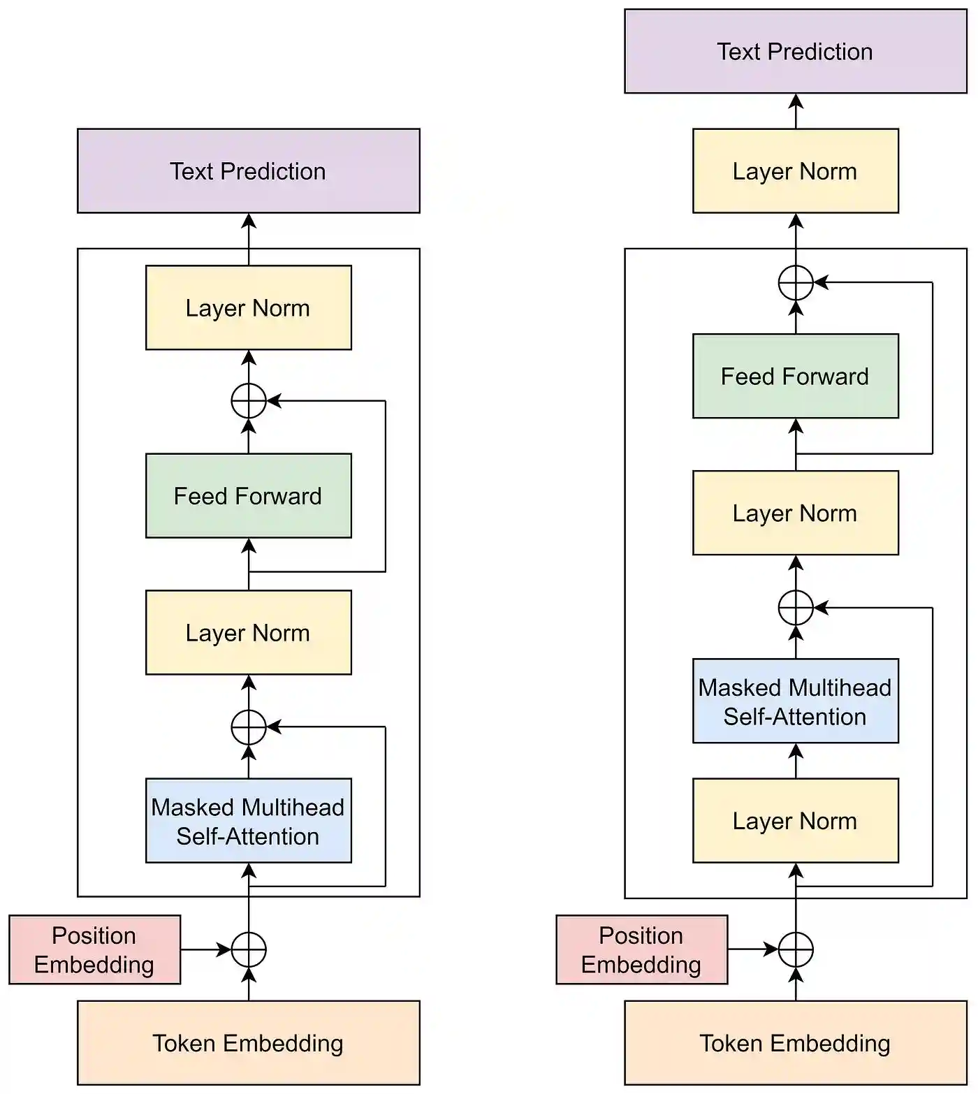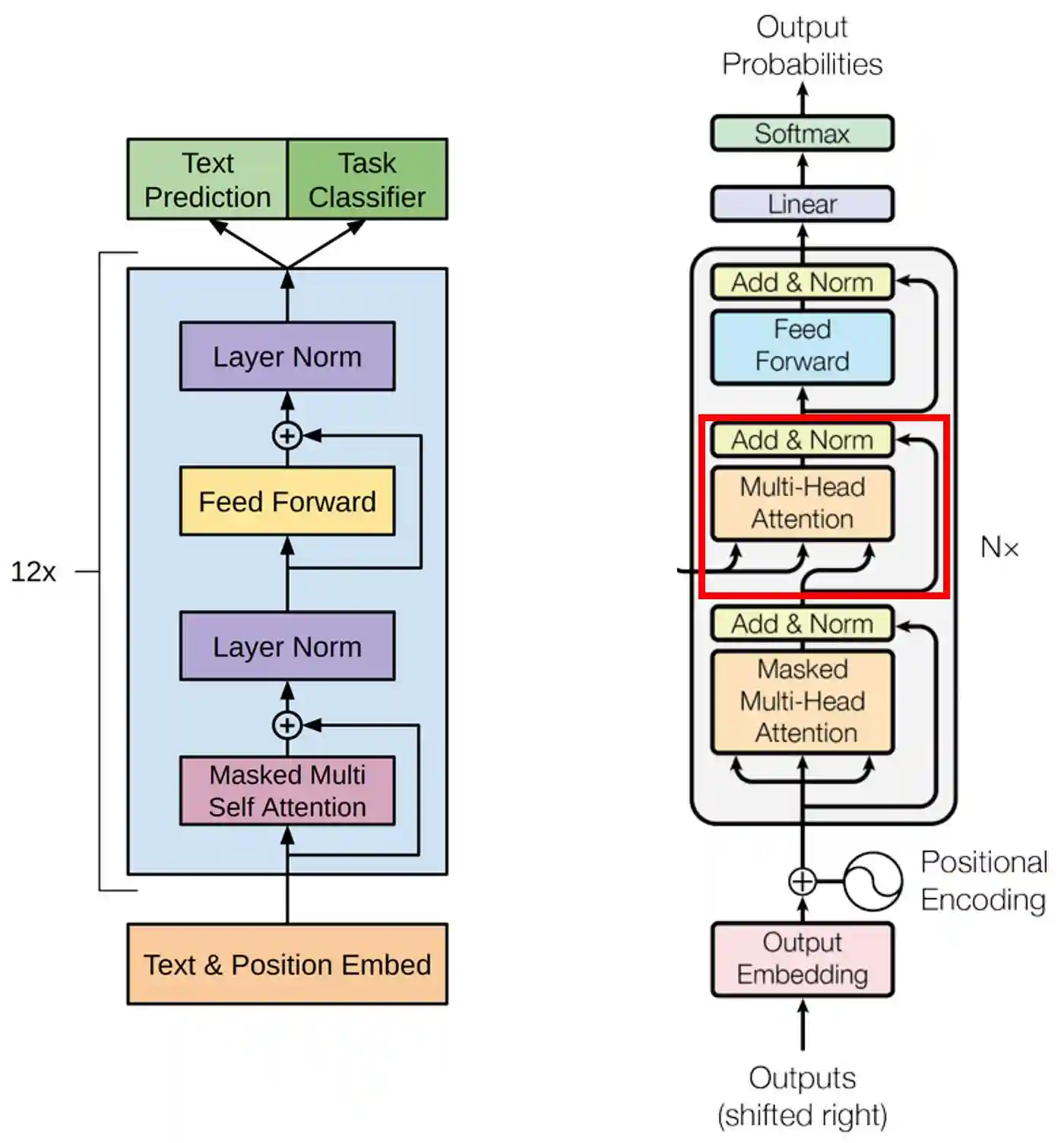 图3.GPT-1架构(左)和原始Transformer架构的解码器部分。