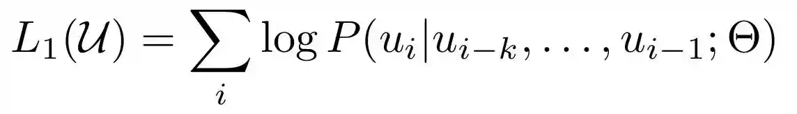 GPT-2预训练是使用下图4所示的目标函数完成的,其中uᵢ是被预测的标记,uᵢ₋ₖ,,uᵢ₋₁是k个前标记(上下文窗口),Θ是模型参数。这个等式本质上是在给定序列中的前一个标记的情况下计算一个标记出现的可能性。概率最高的标记将作为预测输出返回。通过迭代执行此过程,模型将继续提示中提供的文本。如果我们回到图3,我们将看到GPT-1模型有两个头:文本预测和任务分类器。稍后,这个文本生成过程将使用文本预测头来完成。