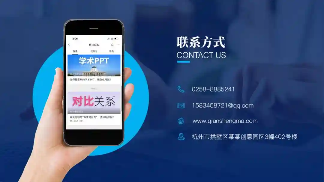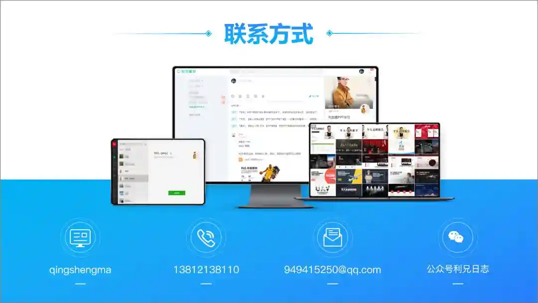 如果是自己的对外介绍PPT,也可以放一个二维码或者公众号介绍,也方便后续的交流。