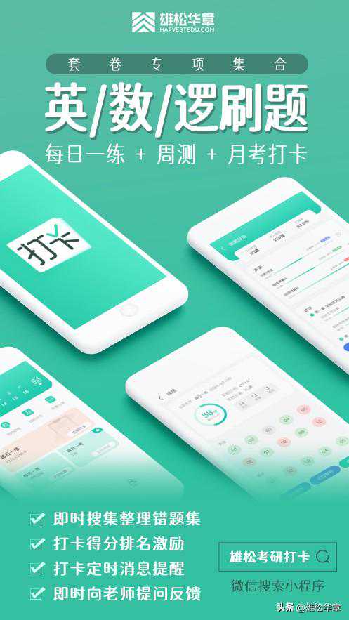 雄松华章提示:2022考研如何轻松上岸?微信小程序搜索“雄松考研打卡”开始刷题