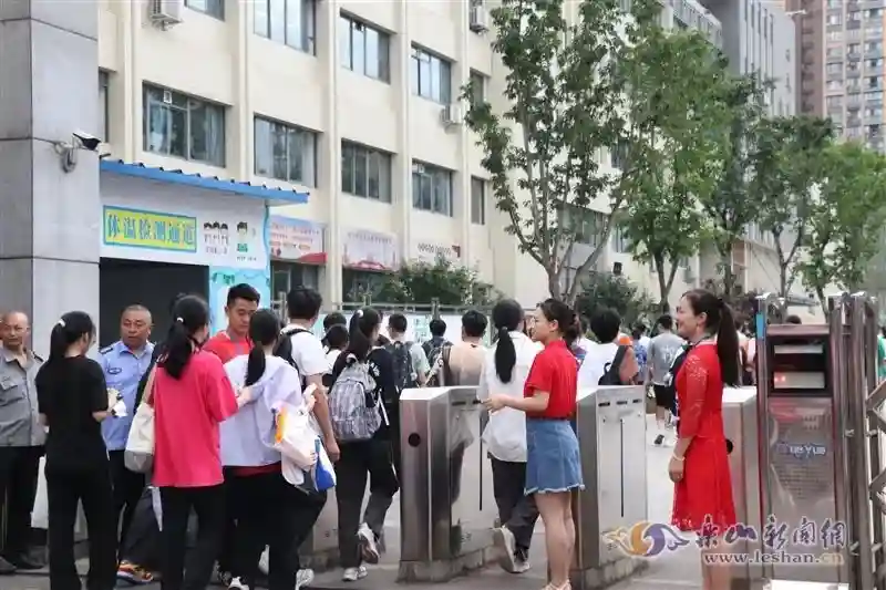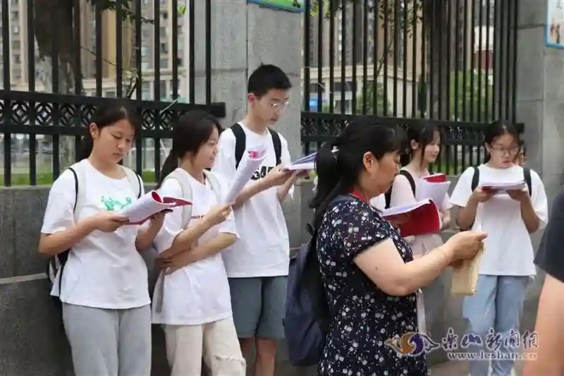 6月11日,乐山市2023年初中学业水平考试拉开帷幕,在嘉州学校考点,现场交通秩序井然,不少考生仍不忘抓紧时间复习。家长、老师们身穿红衣红裙,手持寓意“一举夺魁”的向日葵,营造出满满的送考仪式感。