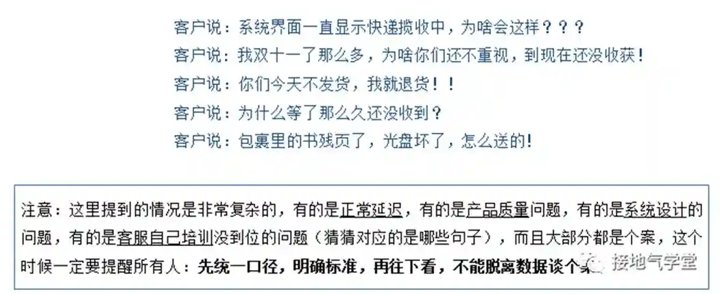 然而这又涉及到第四个问题:客服的工作流程得调整。不调工作流程,依然会有大量真真假假的投诉混杂在其他来电里,后续还是没法跟踪,客服依然会无休无止的抱怨,物流依然不知道自己错在哪。
