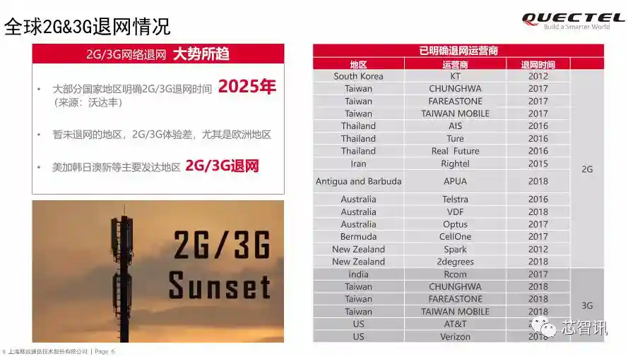 总的来说,从全球范围来看,运营商对于2G、3G网络的清频和退网或者是重耕,将其应用于4G网络,非常有利于运营商的成本控制。而根据沃达丰的预测也显示,2025年全球大部分国家和地区的2G、3G网络都将退网。