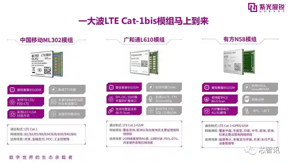 与此同时,三款搭载春藤8910DM的模组产品:中国移动ML302,有方N58和广和通L610也正式推出。