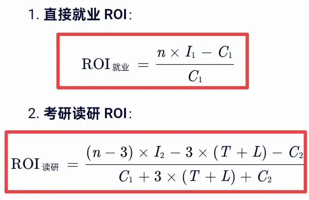 根据这样的设定,直接就业的ROI可能会显著高于选择读研的情况。