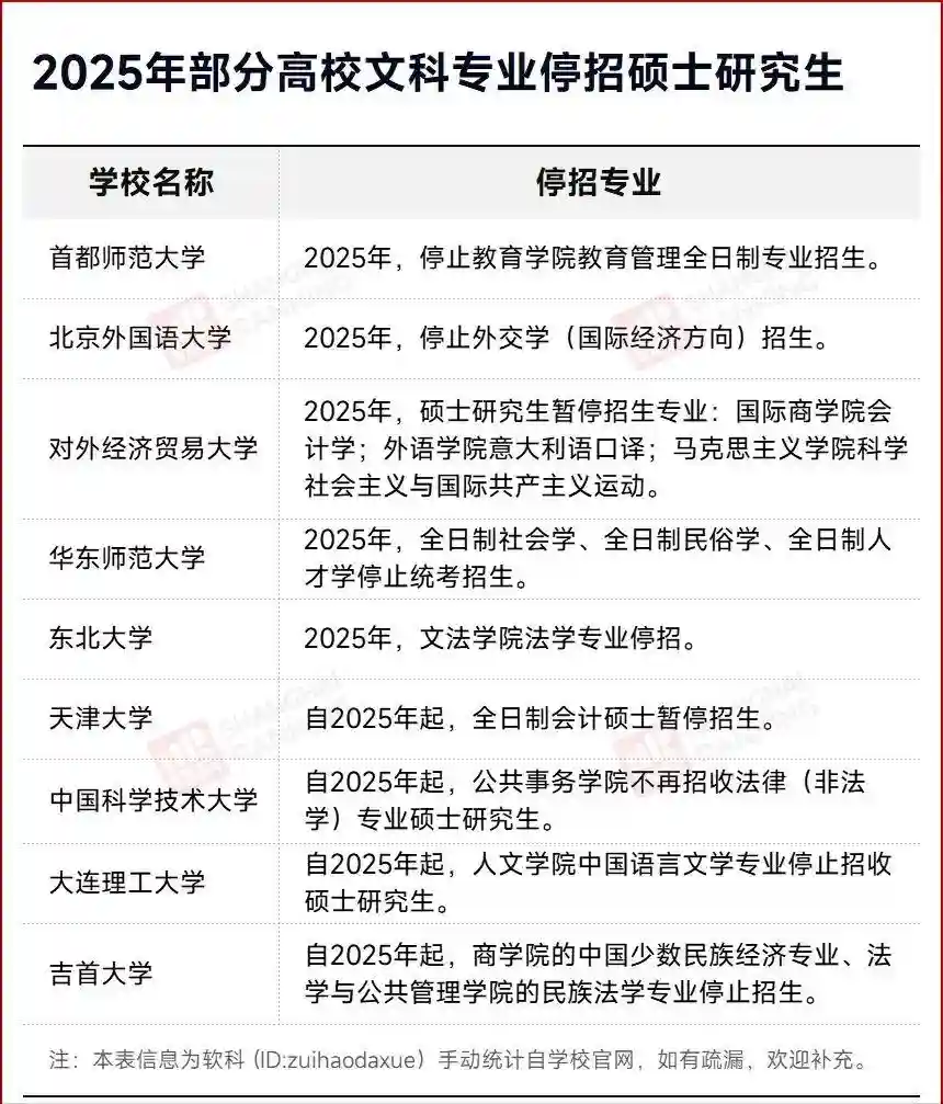 在国内,过去几年间也有不少高校撤销或暂停招生部分文科硕士项目,显示出这一领域整体上受到了一定程度的压缩。