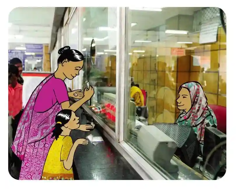 首先,我们需要买一张火车票。我们要去售票窗口去取我们的火车票。